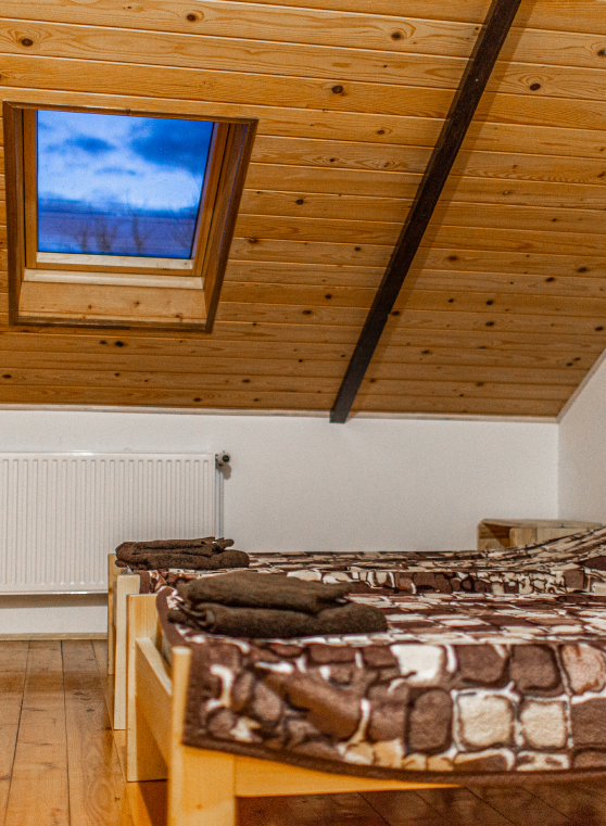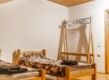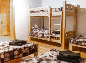 Затишний номер для чотирьох-п’яти гостей з власним WC та душем, автентичними полицями для особистих речей, вільним доступом WIFI та доступом до басейну