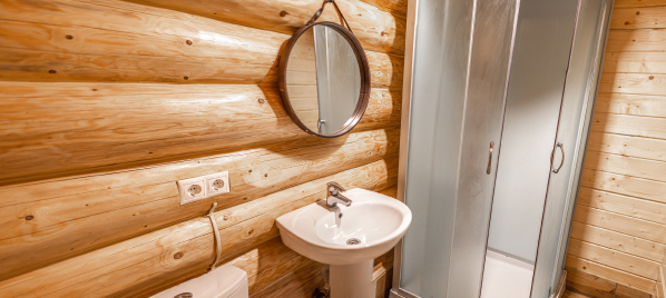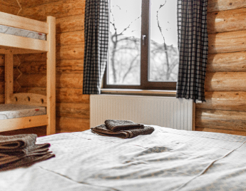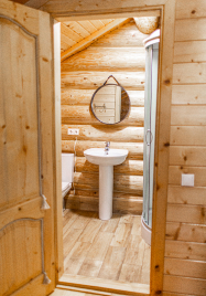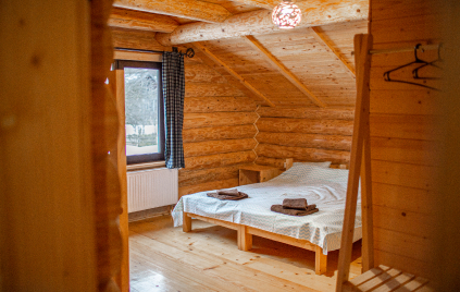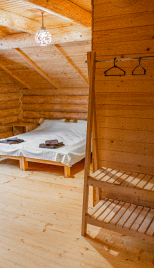 Номеру притаманний мінімалістичний стиль під зруб. Для оздоблення використані натуральні матеріали, що дихають та зберігають тепло, надають атмосфери єдності з природою
